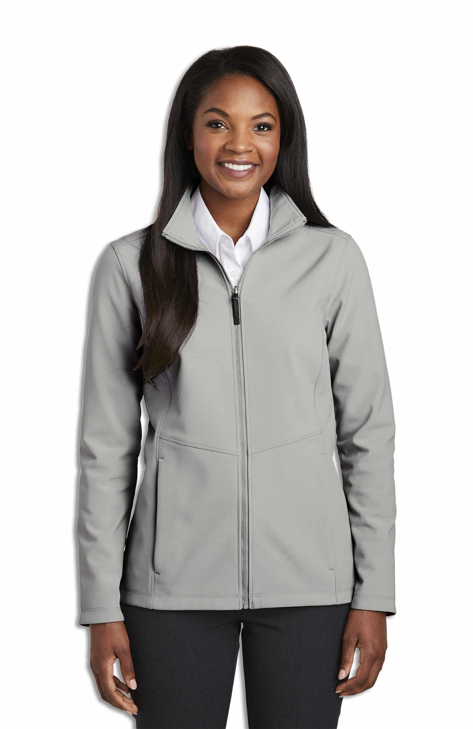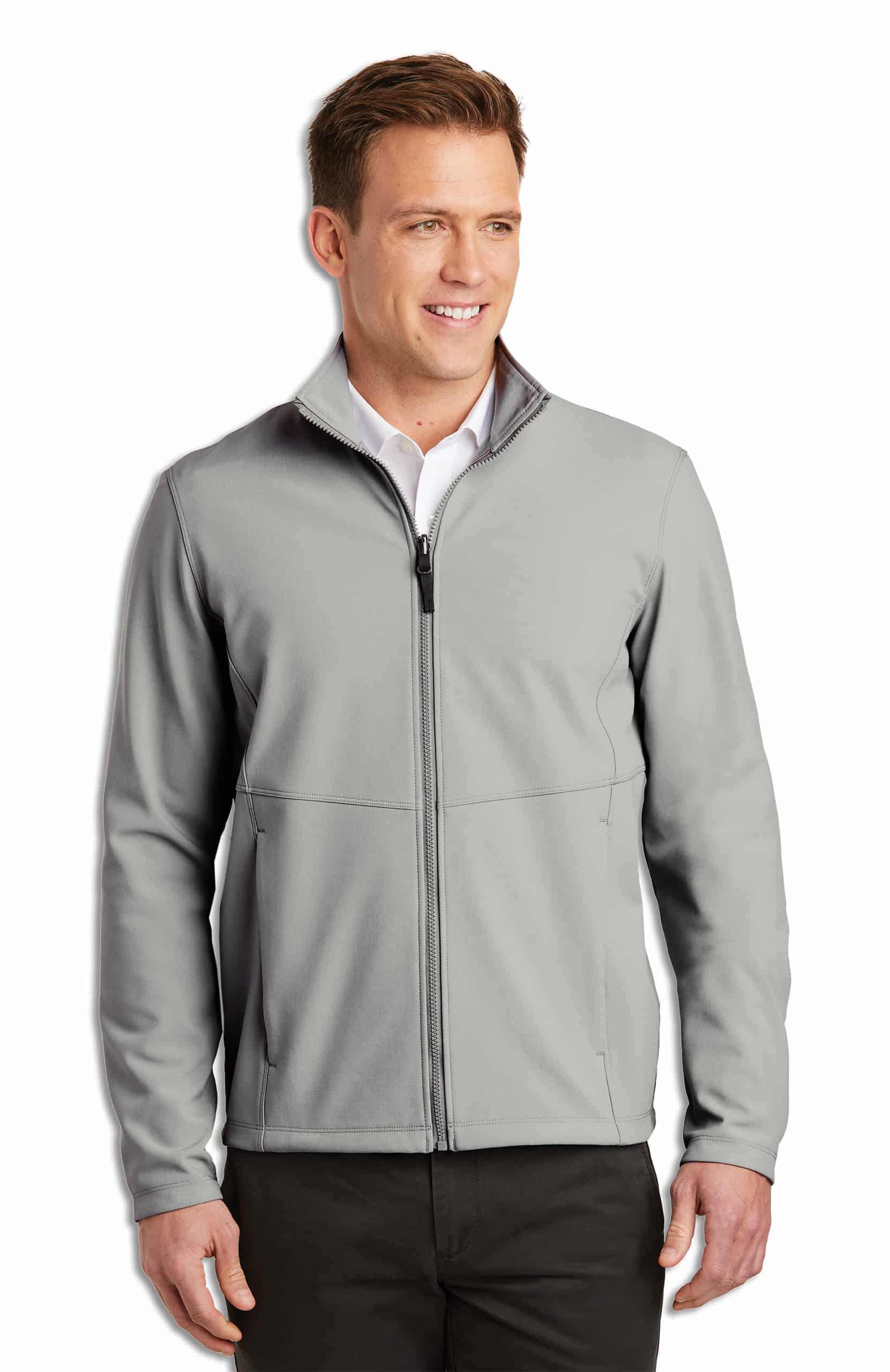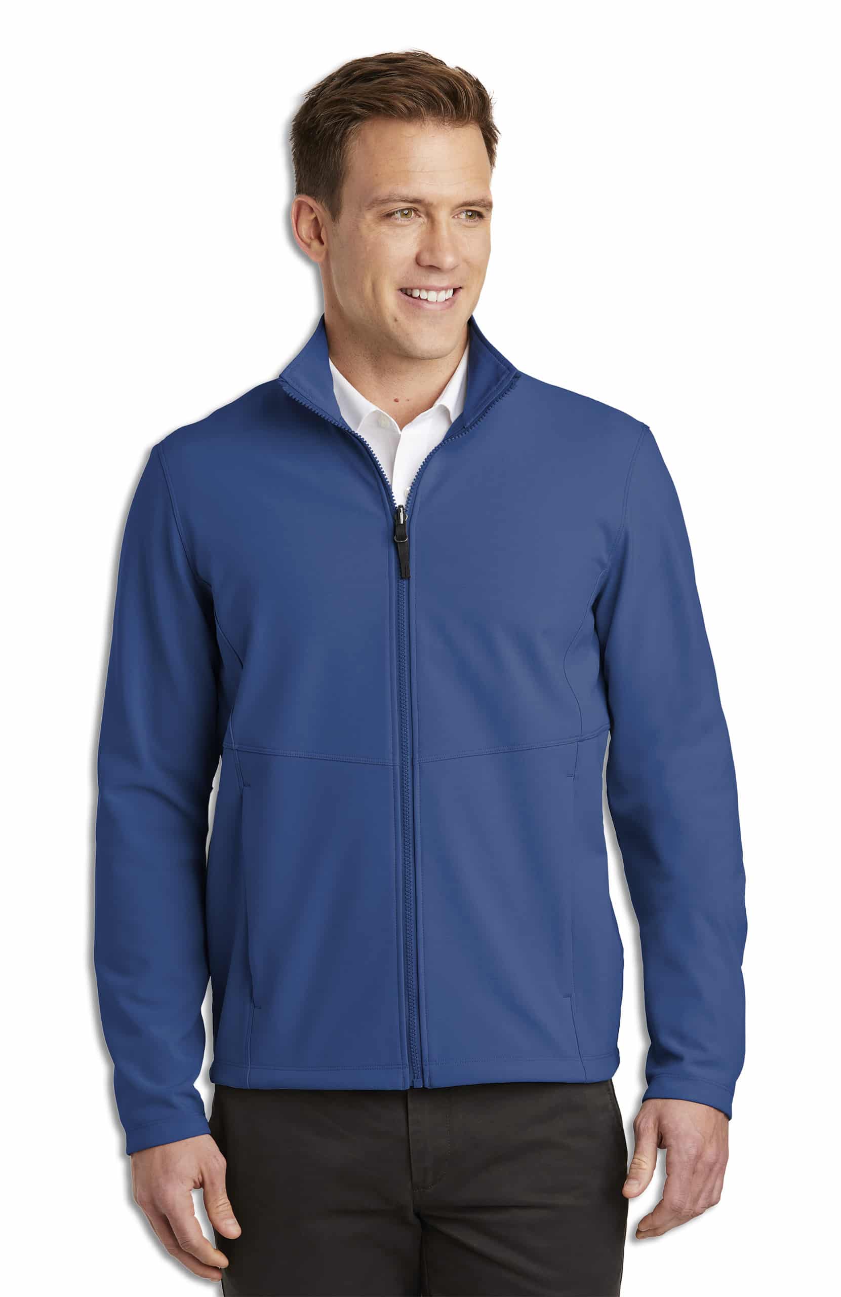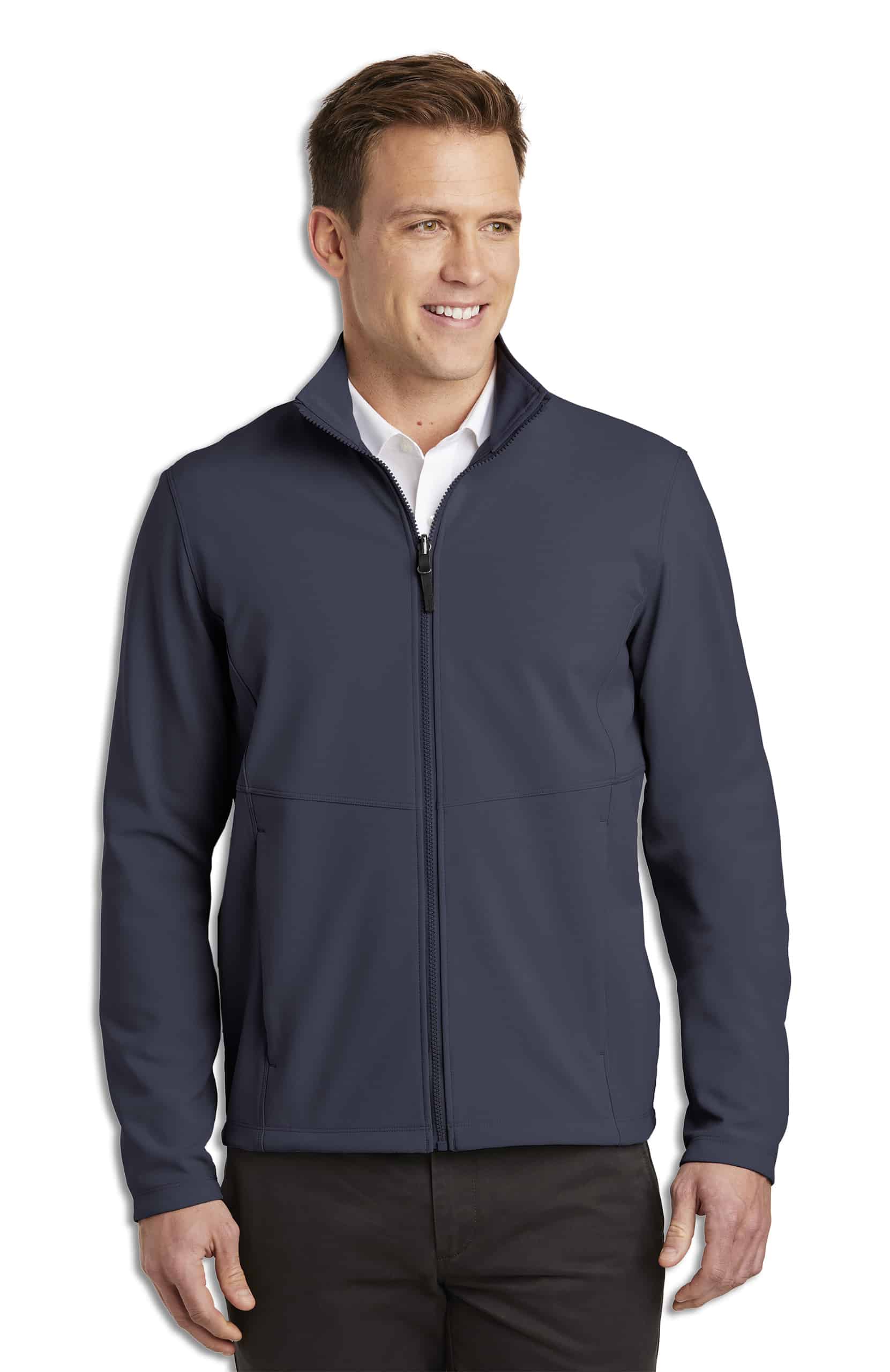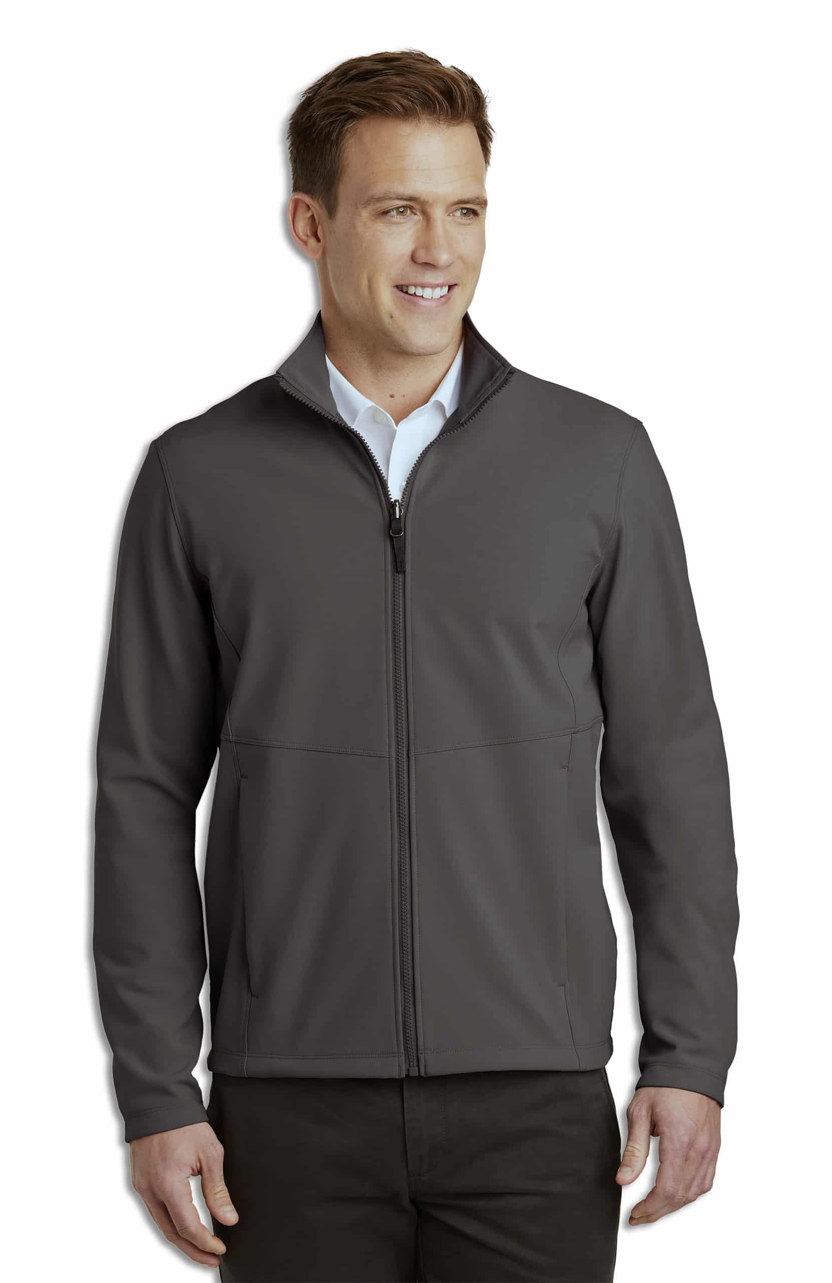 With a subtle mini ripstop texture, this sophisticated soft shell has double-needle stitching throughout and sleek design lines. The water-resistant film and DWR finish combine to resist wind and rain for weather protection.