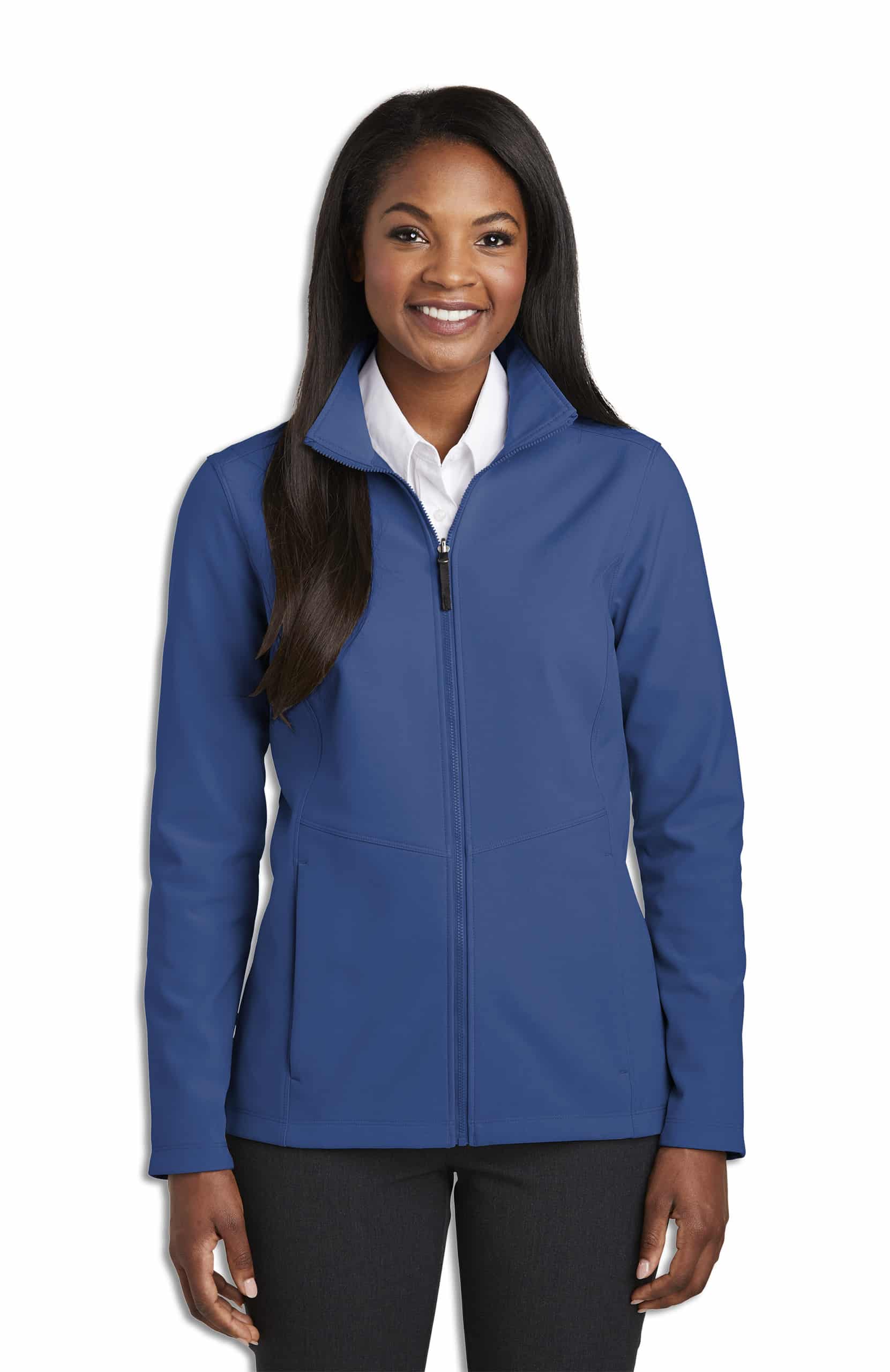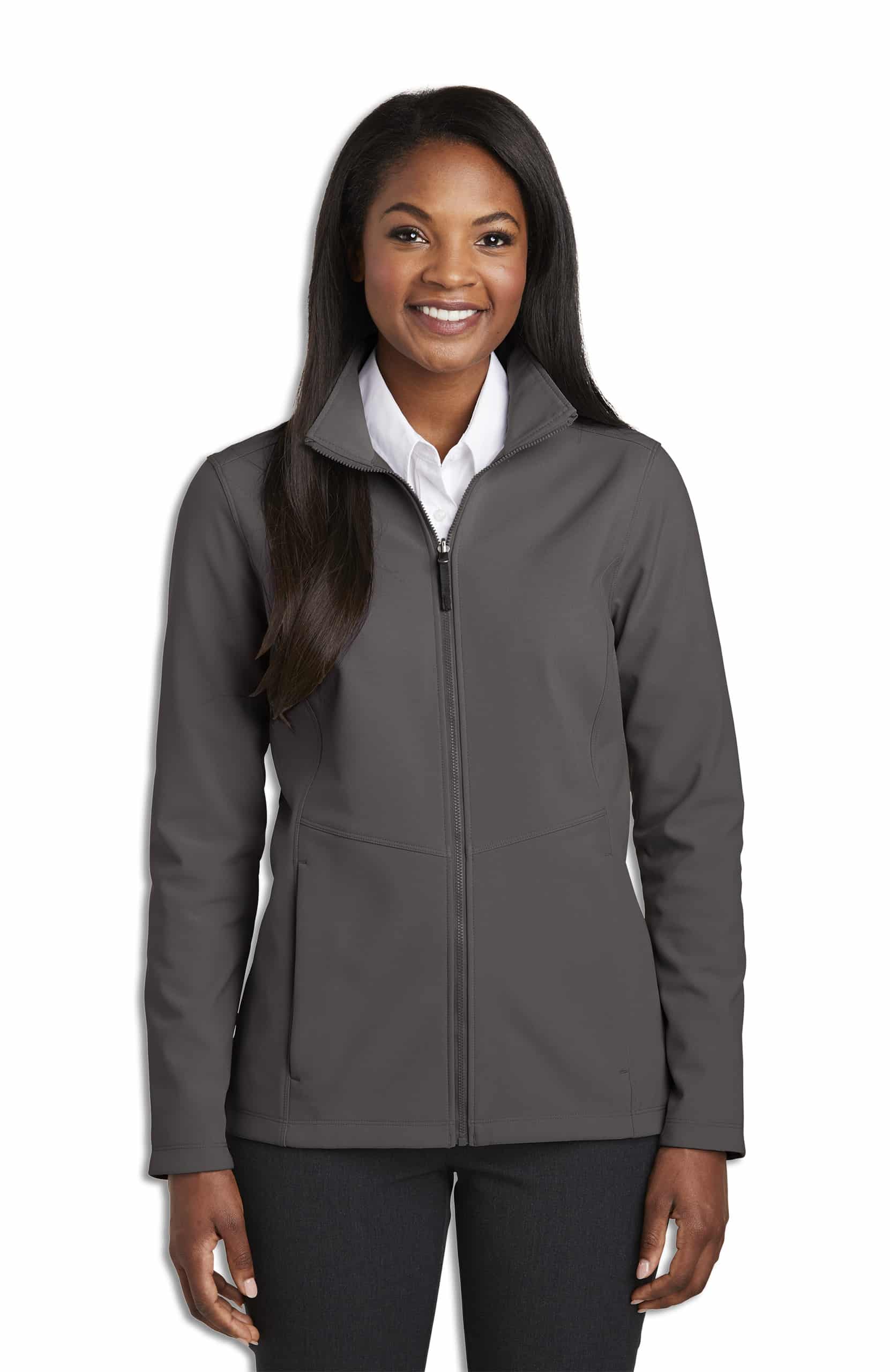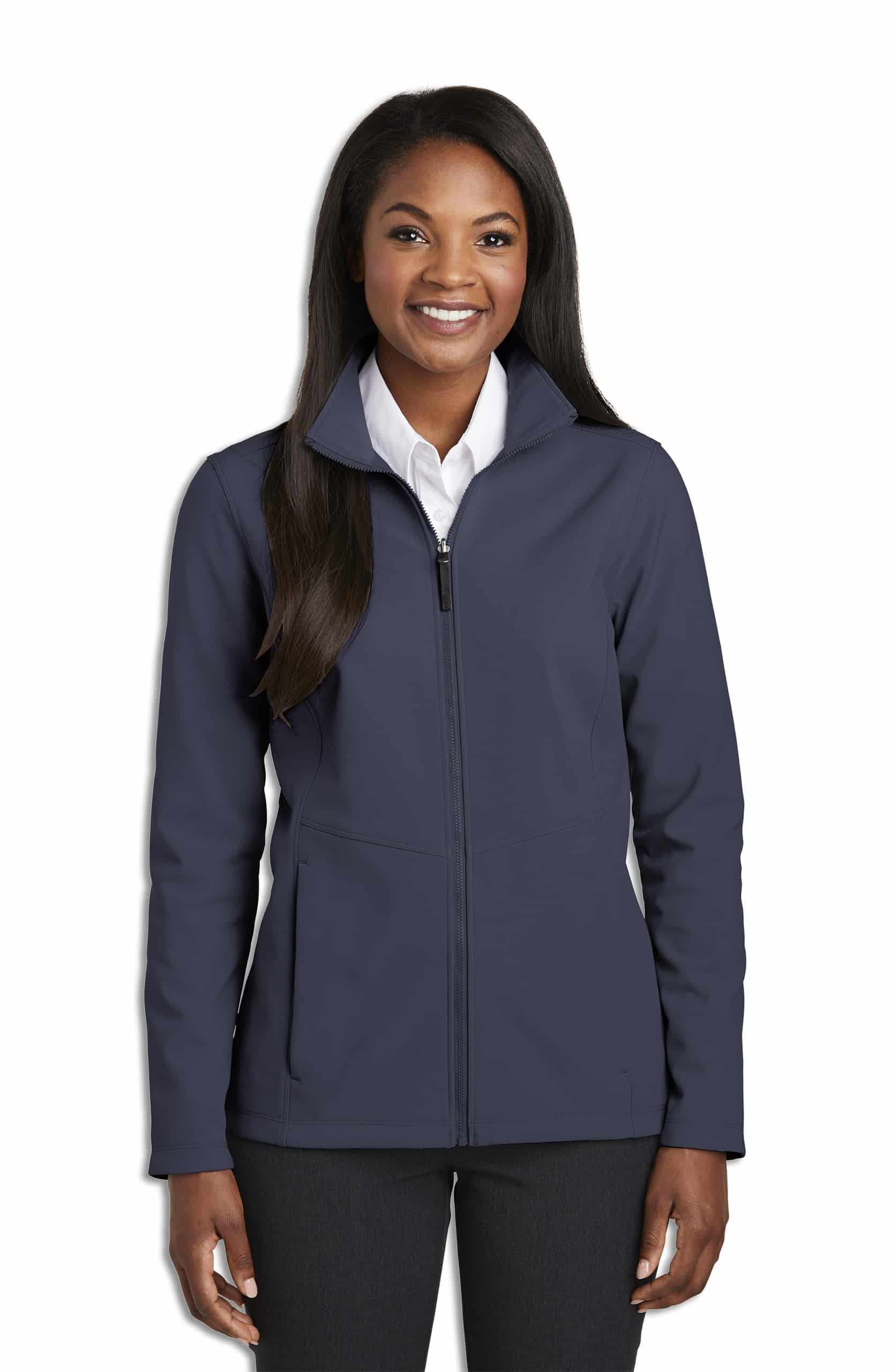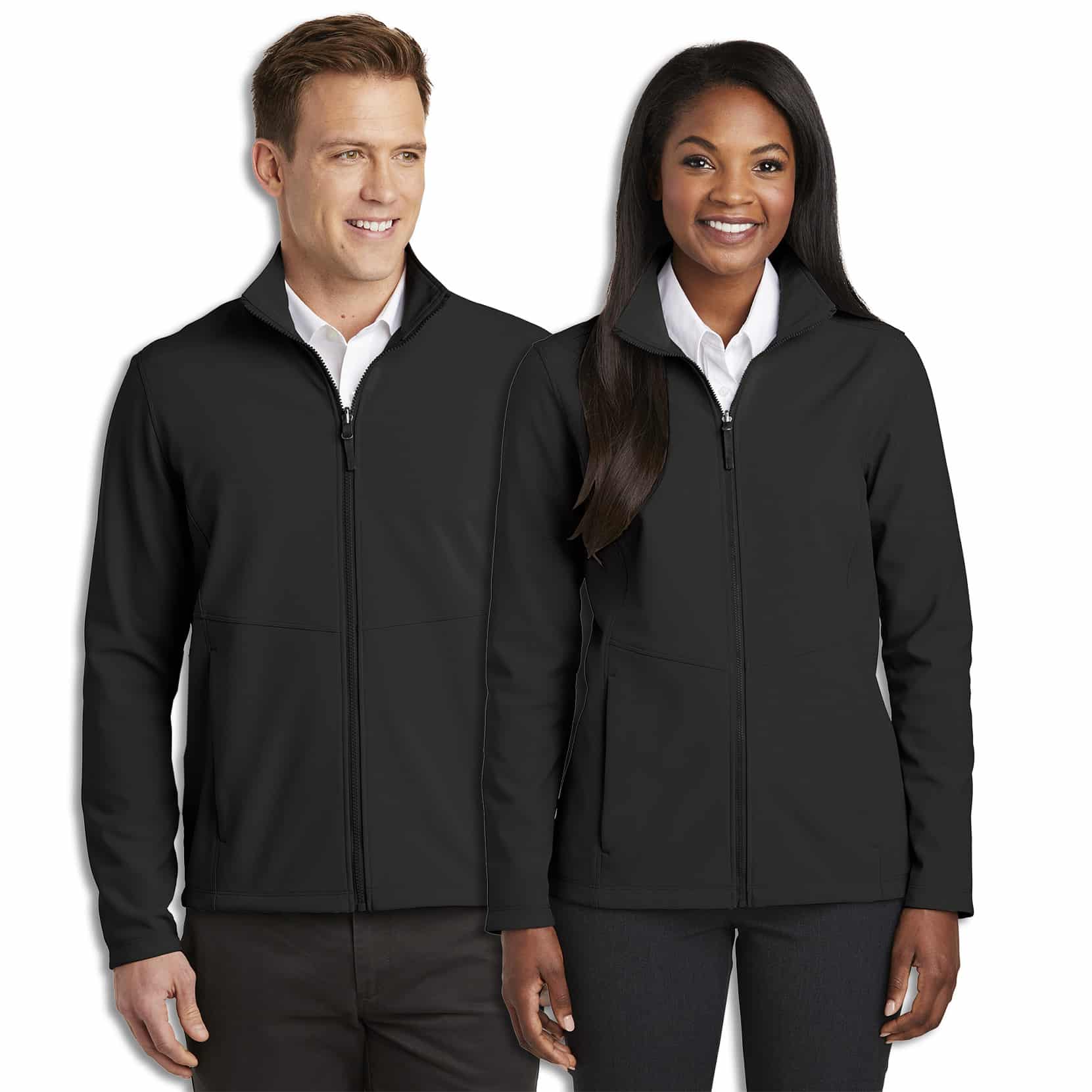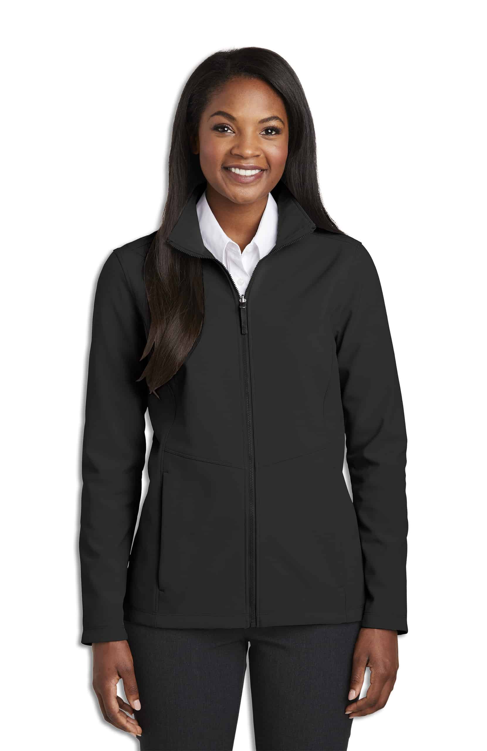 With a subtle mini ripstop texture, this sophisticated soft shell has double-needle stitching throughout and sleek design lines. The water-resistant film and DWR finish combine to resist wind and rain for weather protection.